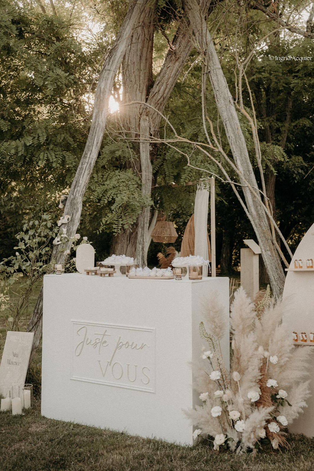 Ma prestation de décoration « Clé en main » a été pensée pour créer une harmonie globale entre les scénographies essentielles :